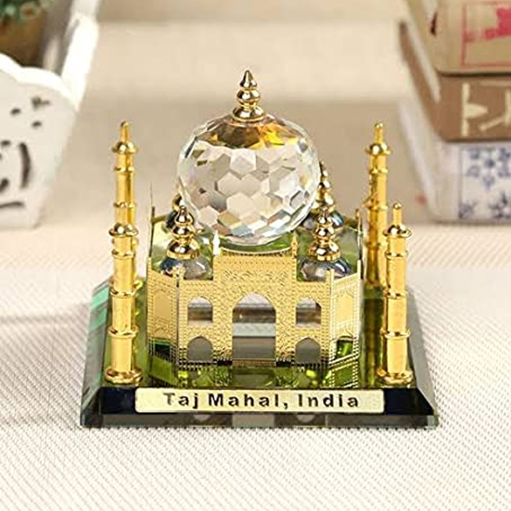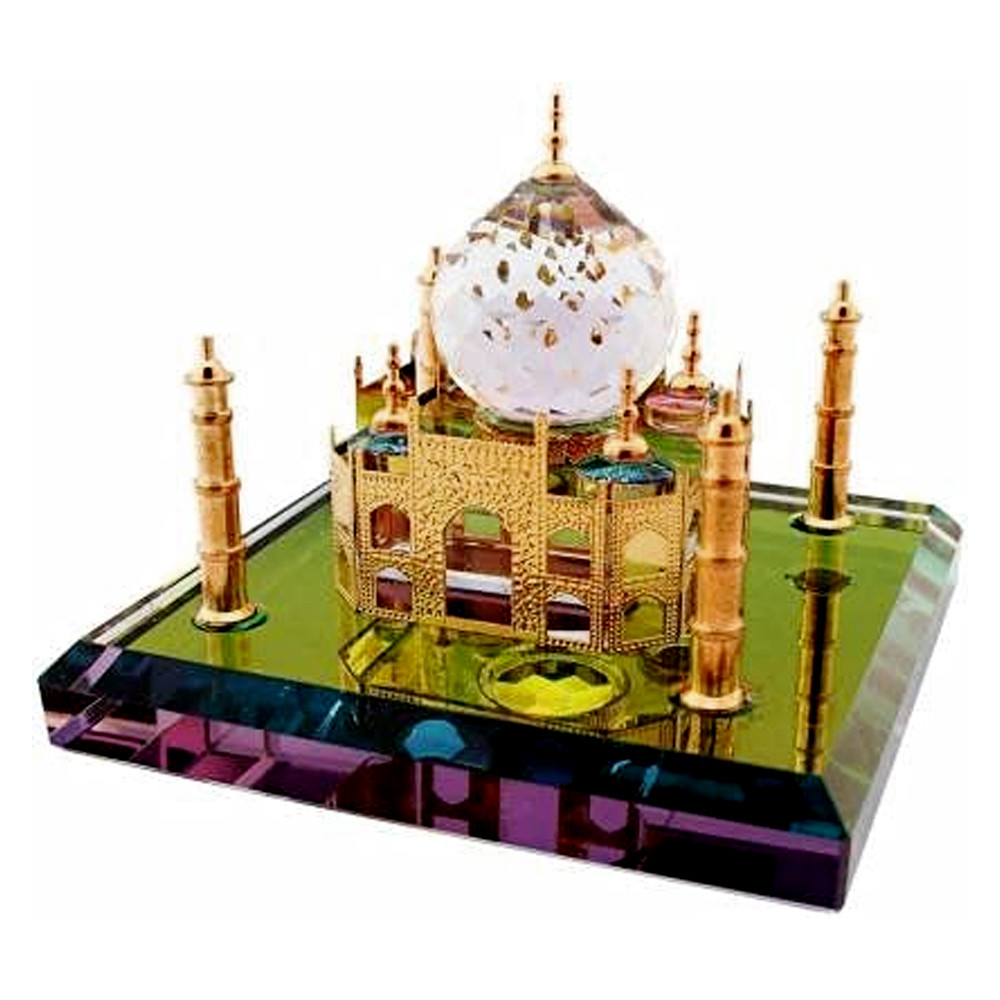 Grace Enterprises Show Piece of Crystal Taj Mahal Home Decorative Miniature Decorative Showpiece - 6 cm (Crystal, Gold)