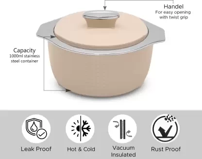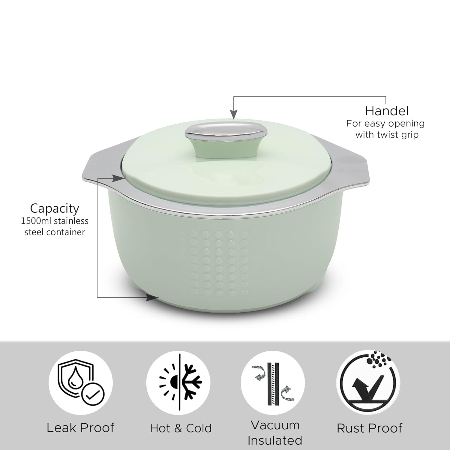 JAYPEE FINEDINE Inner Stainless Steel Insulated Casserole Serve Set with Lockable Lid, 1500 ml Insulated Casserole Set |Food Grade Serving Set |Ideal for Serving Warm Dish